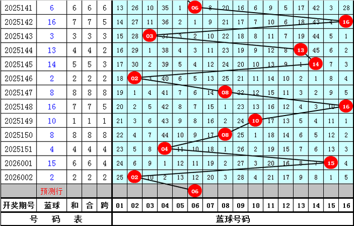 蓝球分析:上期蓝球为小 号02,最近10期大小蓝球号码分别出现5次,走势相当,本期看好小 号蓝球,参考蓝球06。
