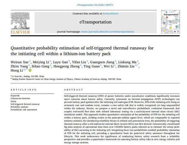 【CNMO科技消息】近日,理想汽车官方宣布,其动力电池团队携手中国科学院物理研究所,在电池安全领域取得重大突破。其合作撰写的最新研究论文,被电动交通领域国际顶级学术期刊《eTransportation》正式收录步。